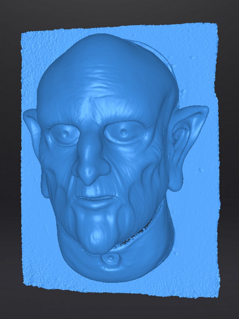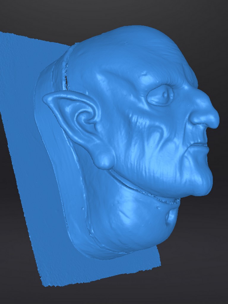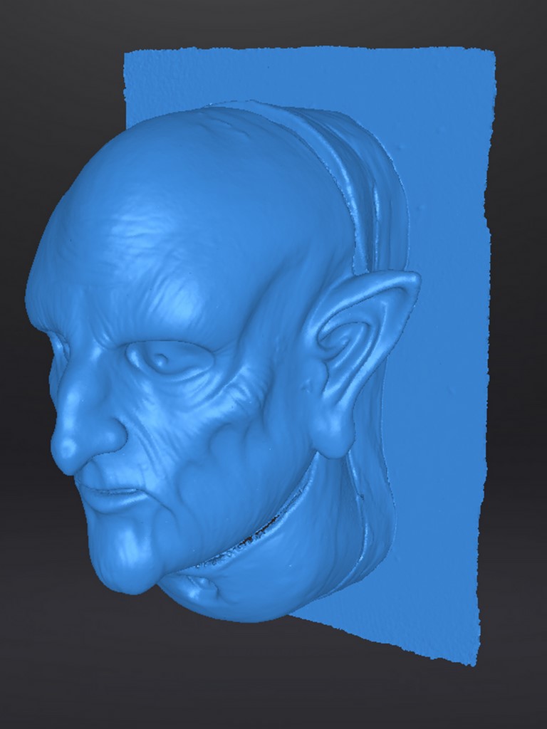 Capture numérique de la sculpture en plastiline de notre masque de Gobelin. L'opération de scan 3D est intervenue avant l'étape de moulage.